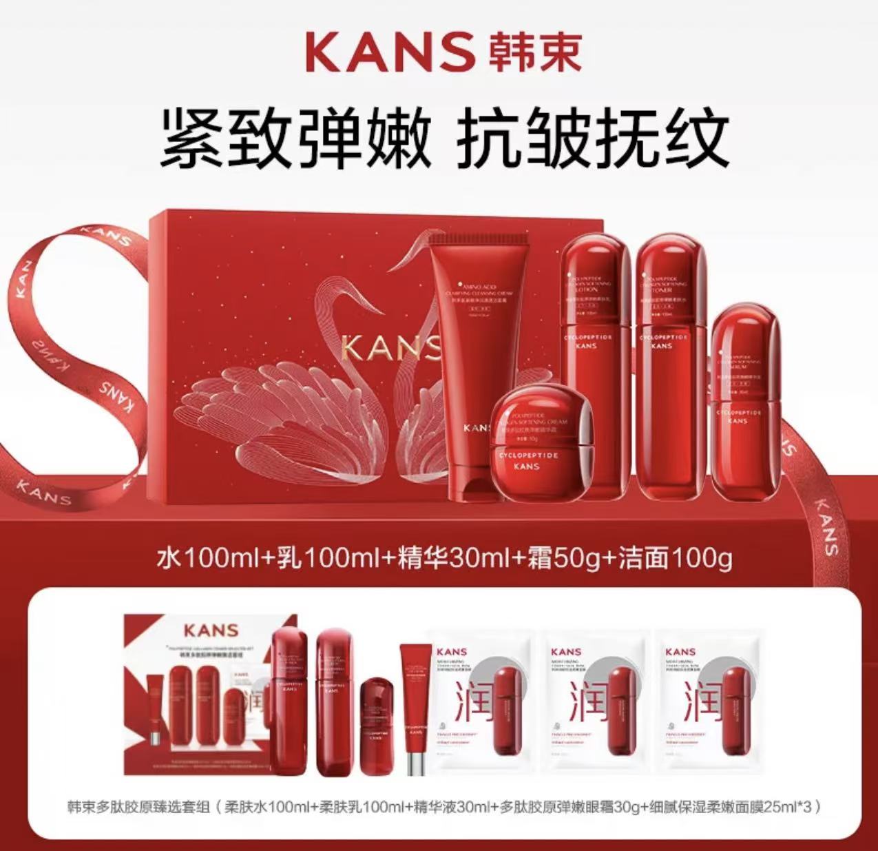 【买1享12】韩束多肽胶原挚臻礼盒装水乳眼霜面霜精华洗面奶(535ml+180g)正品保证