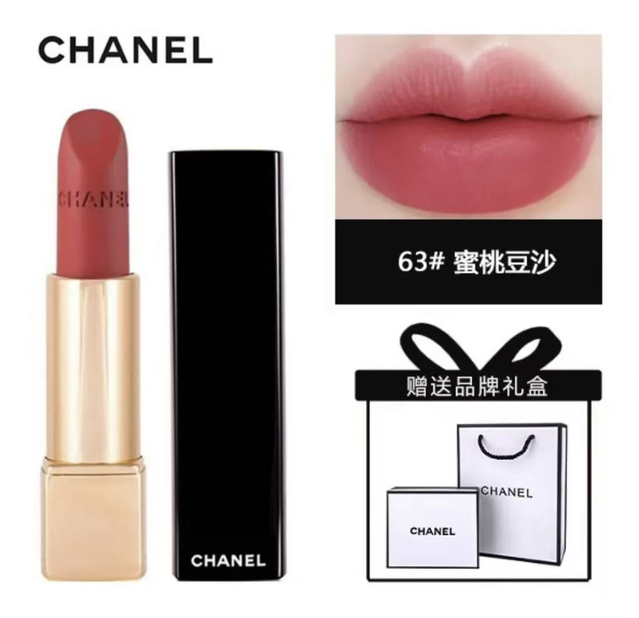 七夕情人节 香奈儿口红 63号蜜桃豆沙 魅力丝绒唇膏口红【赠礼盒手袋】3.5g C-11